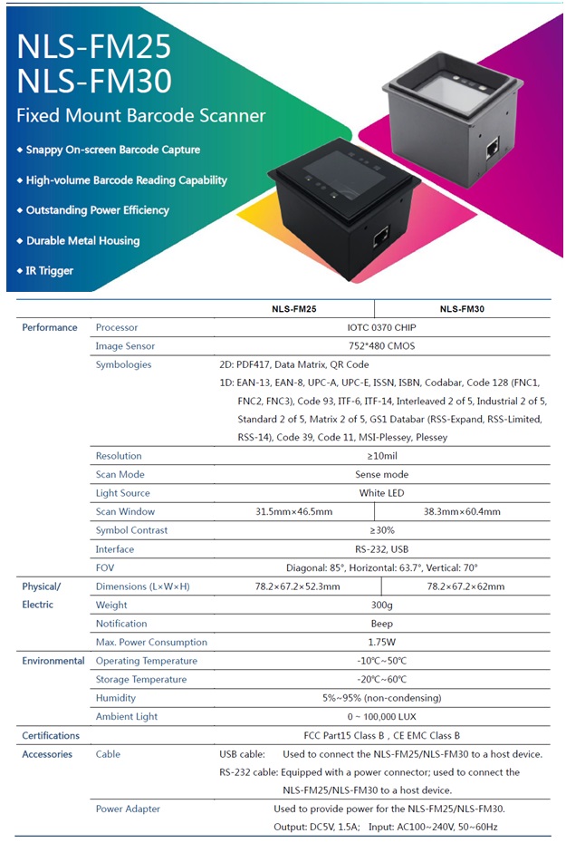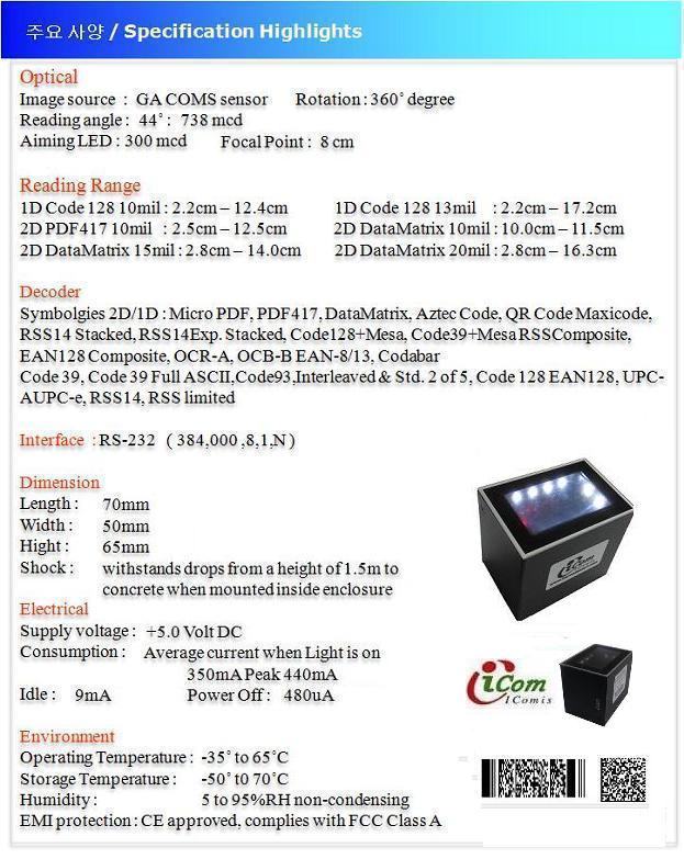 - Barcode Engine : 1D Laser, 1D CCD, 1D/2D Imager