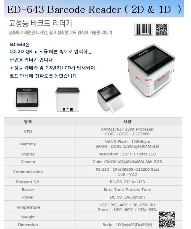 - 1D, 2D ¼±ÅÃÀû ¹ÙÄÚµå ¸ðµâ Àû¿ëÀÌ °¡´ÉÇÑ Optional Barcode Scanner