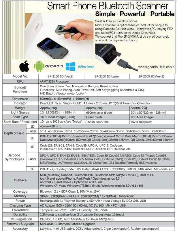SKT,KT,LGT ¸ð¹ÙÀÏÆù¿¡ ¿¬µ¿ ¿¬°á¿ë ¹ÙÄڵ彺ij³Ê:Unireader SP-2100(¸ð¹ÙÀÏ Bluetooth¢ç¹ÙÄÚµå ½ºÄ³³Ê) |