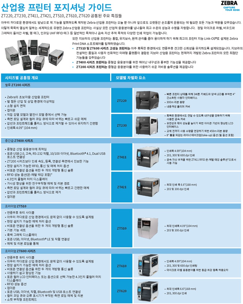 Á¦ºê¶ó ZT400 ½Ã¸®Áî »ê¾÷¿ë ÇÁ¸°ÅÍ Zebra ZT411, ZT421,ZT400 RFID Á¦Ç° ÁÖ¿äÆ¯Â¡