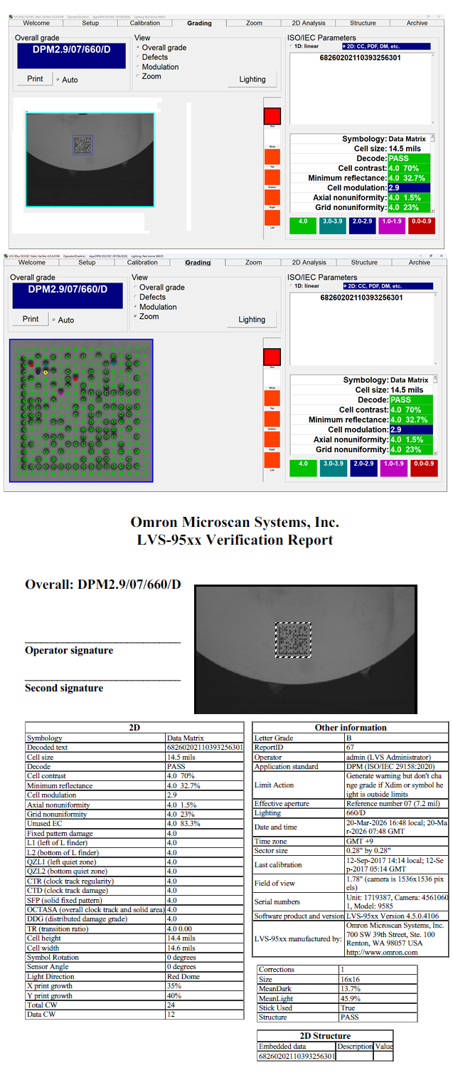 ¹ÙÄÚµå °ËÁõÀ¸·Î ÆÇµ¶ °¡´ÉÇÑ °íǰÁú ¹ÙÄÚµå »ý¼ºÀ» À§ÇÑ Ç¥½Ã °øÁ¤À» Àû¿ëÇÒ ¼ö ÀÖ½À´Ï´Ù. ¹ÙÄÚµå °ËÁõ Àåºñ´Â ¹ÙÄڵ带 ºÐ¼®ÇÏ°í ¹®ÀÚ µî±Þ(A ~ F) ¶Ç´Â µ¿ÀÏÇÑ ¼ýÀÚ ¹üÀ§(4 ~ 0)·Î Ç¥½ÃµÇ´Â ǰÁú µî±ÞÀ» ÇÒ´çÇÕ´Ï´Ù. ÀϹÝÀûÀ¸·Î C µî±Þ ÀÌ»óÀ» ¹ÞÀº ¹ÙÄÚµå´Â ÇÕ°ÝÀ¸·Î °£ÁֵǸç 100% ½ºÄµ °¡´ÉÇÕ´Ï´Ù.
