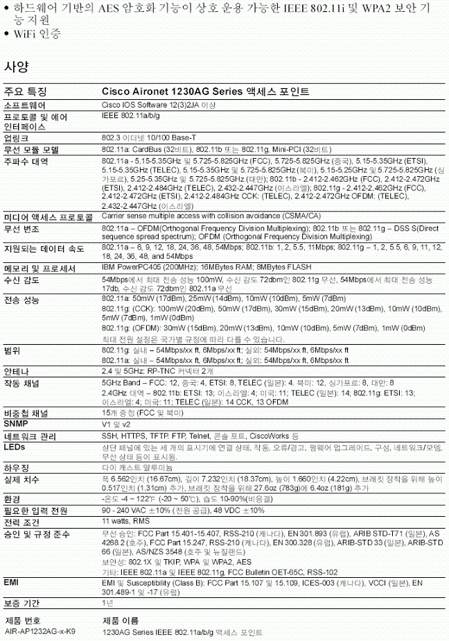 * AP1231G ±âº»±¸¼º:AIR-AP1231-G-A-K9(AP),AIR-CONCAB1200(ÄÉÀ̺í),AIR-ANT-4941(¾ÈÅ׳ª),AIR-PWRINJ3(Àü¿ø)