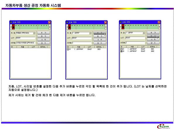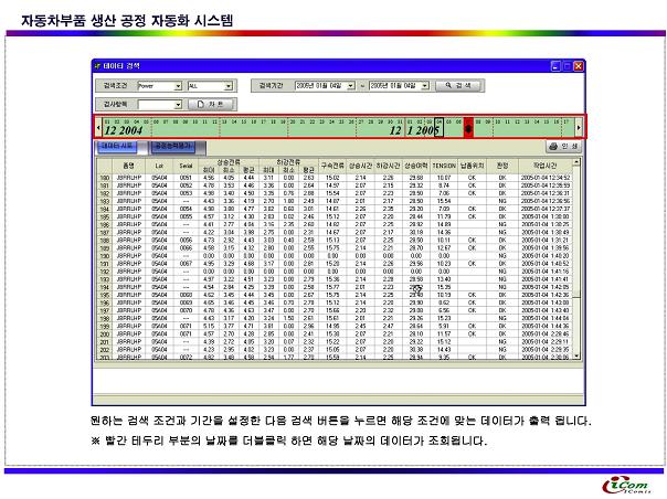 Á¦Ç° ¹× ºÎǰ Á¦Á¶ »ý»ê½Ã ÀÚµ¿À¸·Î °èÃø,ÃøÁ¤,±âÁذª Á¤º¸À» D/BÈÇÏ¿© °ü¸®ÇÏ°í ¶ÇÇÑ °øÁ¤º°,Á¦Ç°º° °ü·ÃÁ¤º¸À» °ü¸®ÇÏ¿©